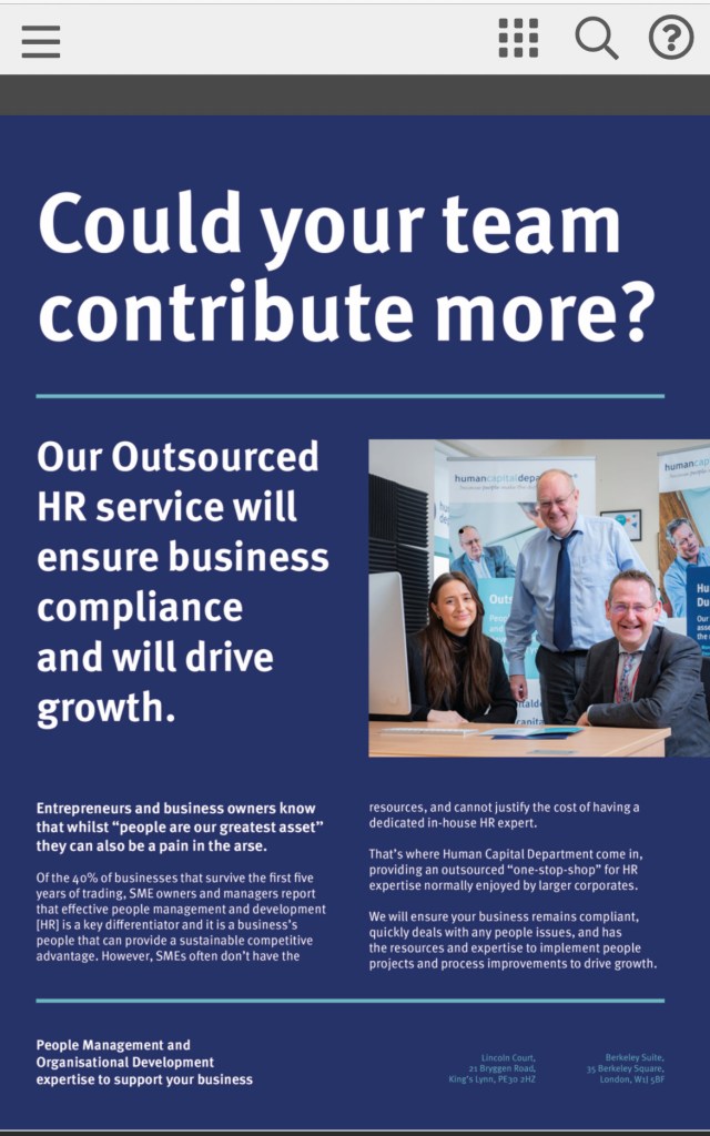 February 2023, and a few days after major surgery, Mr Middleton received a letter from Adrian Blumfield, inviting him to discuss the future of his employment, the timing of which Judge Warren wrote, ‘was crass’. A formal grievance was raised by Mr Middleton which was to be heard by Peter Lawrence of Human Capital Department (https://www.humancapitaldept.com) whose own advertising states that, “People can be a pain in the arse”. (see below!)