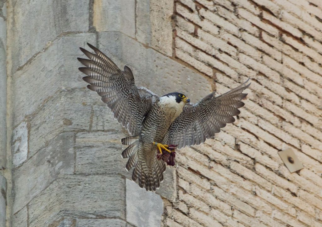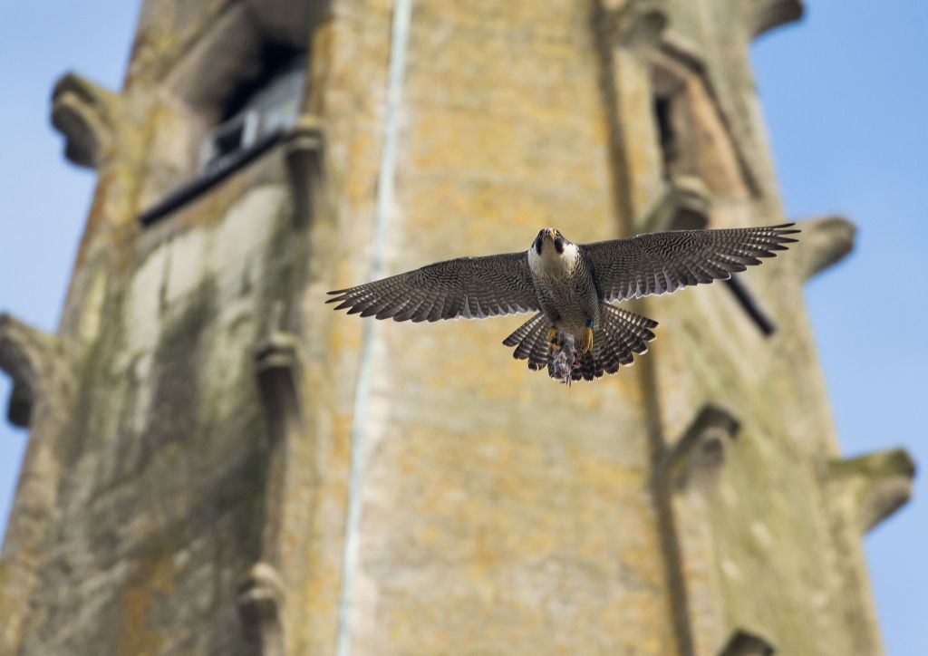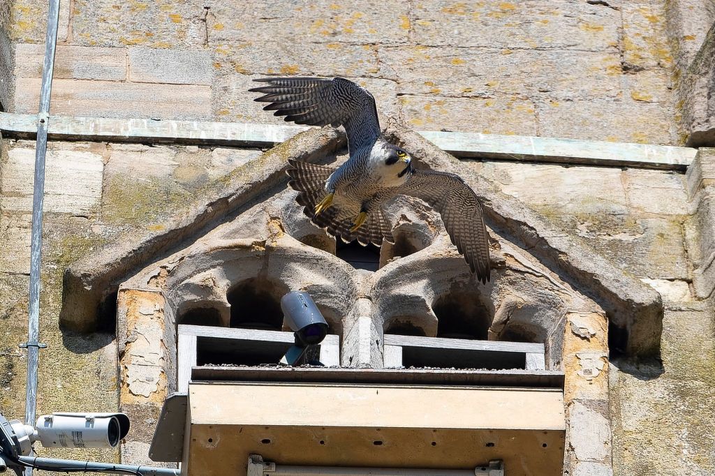 These things happen – everyone knows this. Life is fragile, even for an apex predator at the top of her game, but for many people, myself included, GA was not just a bird. To me she was my daily companion, my link to the outdoor life that I love so much. I could be working in my office and a cacophony of screeching would begin outside. It took a stronger will than I possess to resist and so I would walk out into the car park and look up, just to see what she was up to. I say ‘she’ but the tiercel could be just as vocal – however GA was spectacular in her screeching. Barely a working day would go by when I would not mutter ‘hello’ to her as I crossed the car-park. My lunch would often be taken in the Cloister garth, watching the peregrines and their young whizz, arrow-sharp and graceful, into the sky above. Looking up at the sky filled only with that silhouette, I could have been standing in the middle of a fen, far away from the city, and I was grateful for that.