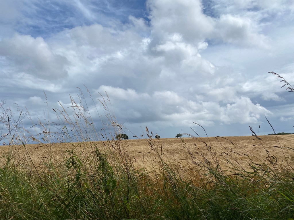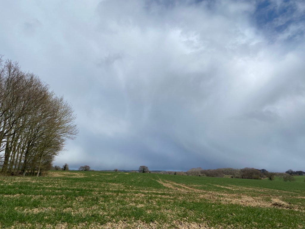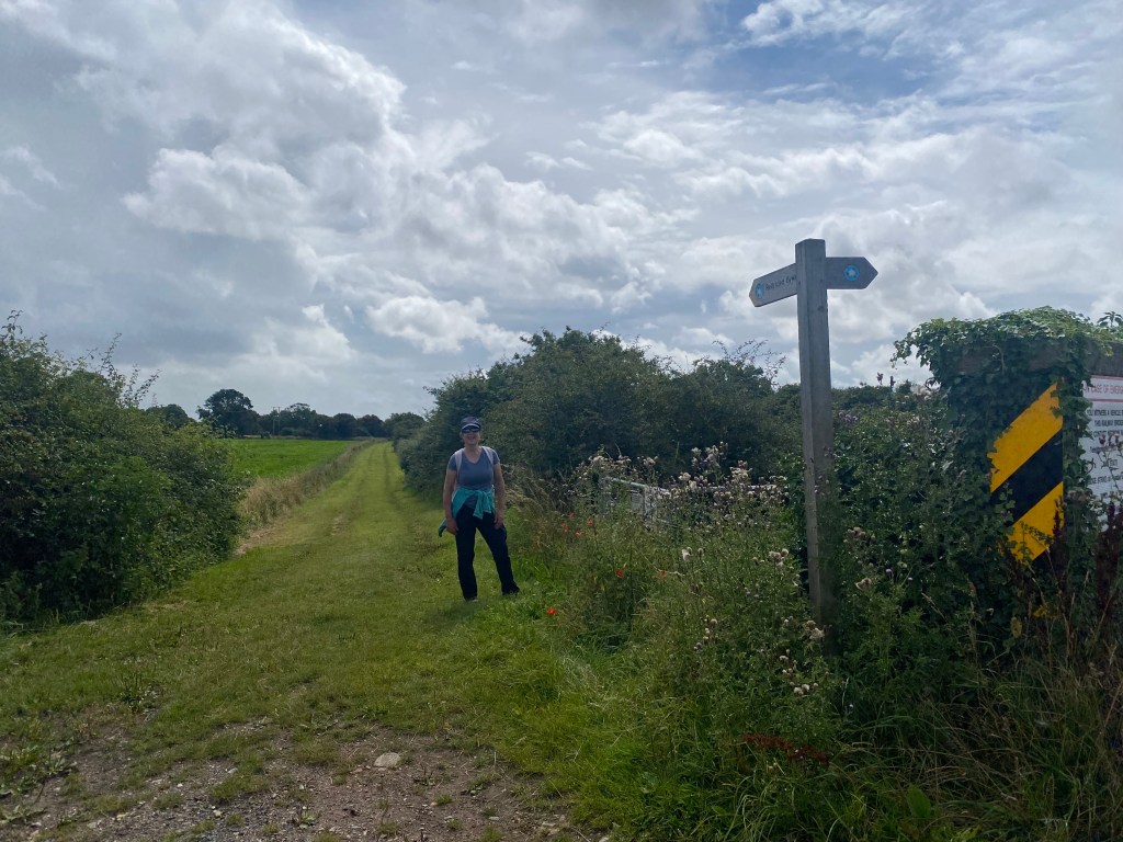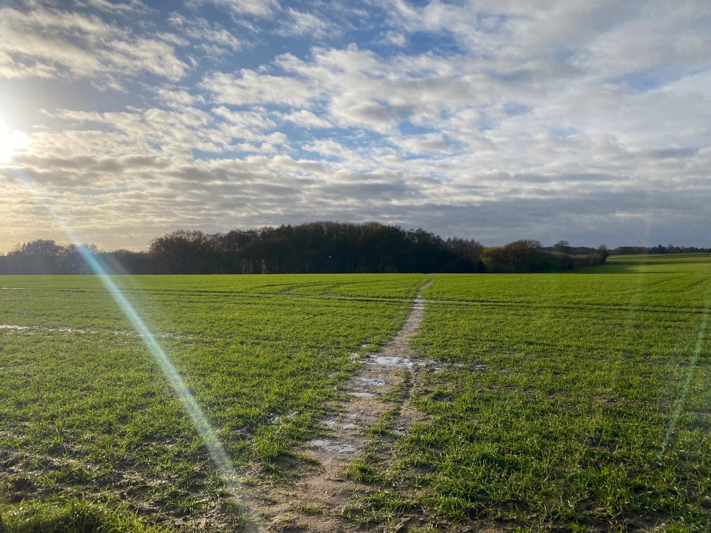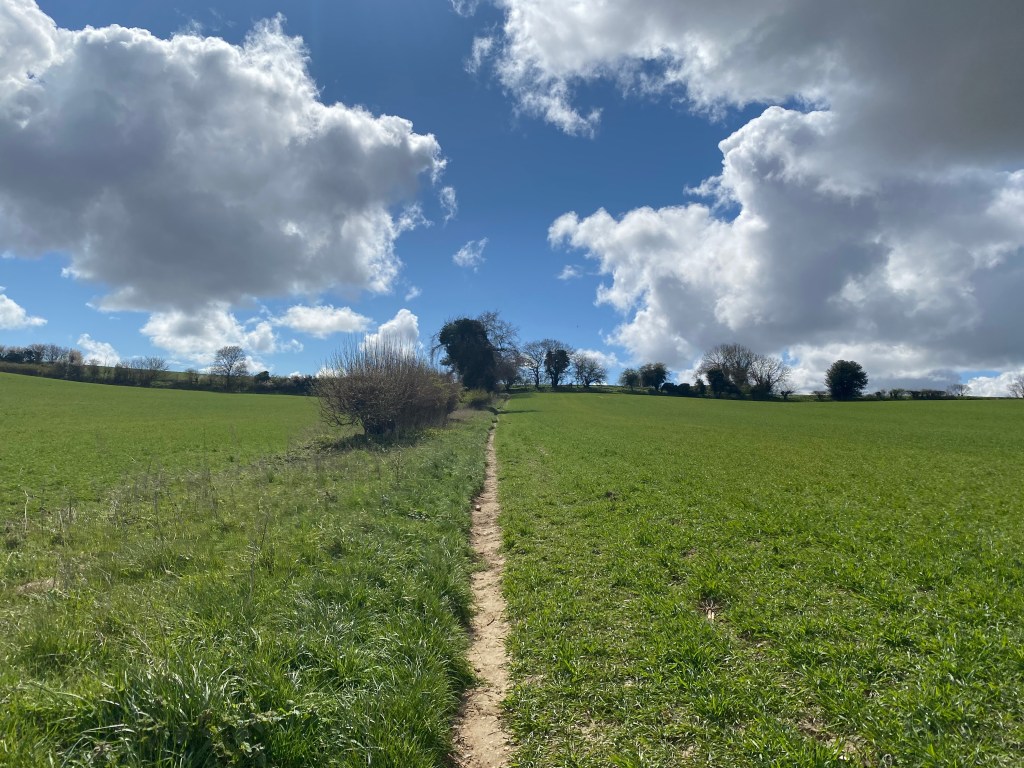 This footpath becomes at track at Willow Farm and you follow it until it joins Church Lane. Turn left for a few paces and you will see the footpath going off to your right. The skies really open up on this part of the walk and we had to cross one of my favourite kinds of path – a cross-field track. Most farmers are absolutely fantastic at making access to walkers easy on these paths but, at the risk of sounding like a broken record, do stick to the path -and if you need to walk in single file to cross the field without treading on the crop, then do so. Yes, I’m a farm-workers daughter and old habits die hard!