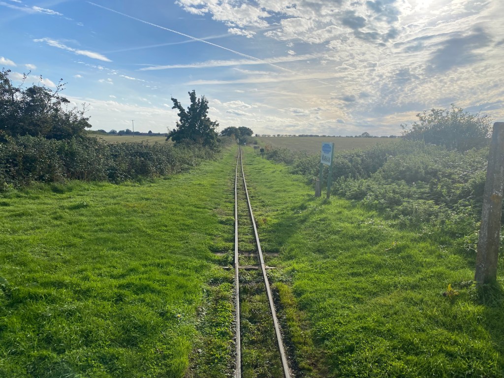 When the footpath meets the road, turn left and cross over the railway line, and then take the track which runs alongside the line on your right.