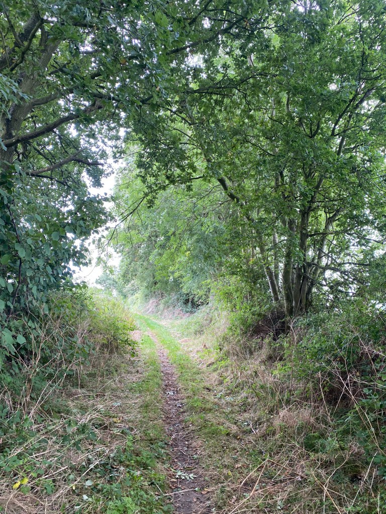 This is a 7.33 mile walk across fields, a few stretches of quiet road and some beautiful lanes, finishing with a stretch through atmospheric woodland.