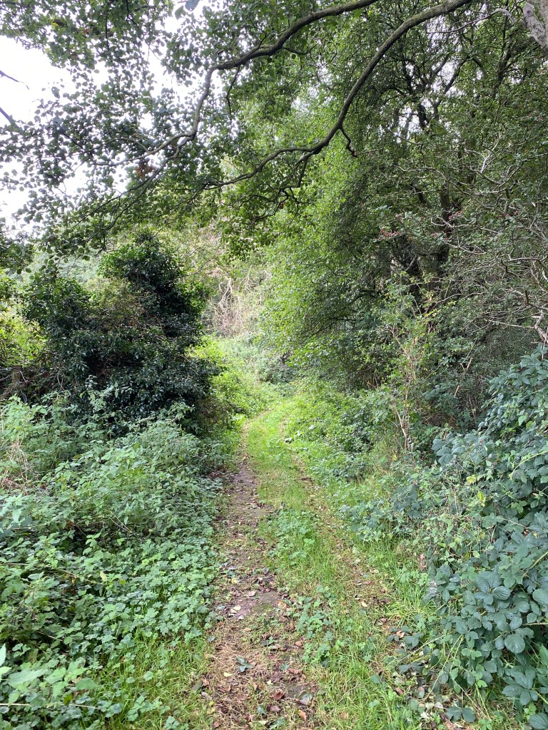 From the Pauls Lane carpark in Overstrand, follow the lane west until you pass Arden Close on the left. The next left will take you on a footpath which follows the route of the old railway line up and around allotments and climbing up towards the old railway station. This is now a rather lovely house but I always mourn the loss of any rail track. Pause at the house and invoke any demons you wish on Lord Beeching, and then follow the footpath as it dips into the trees and sinks.