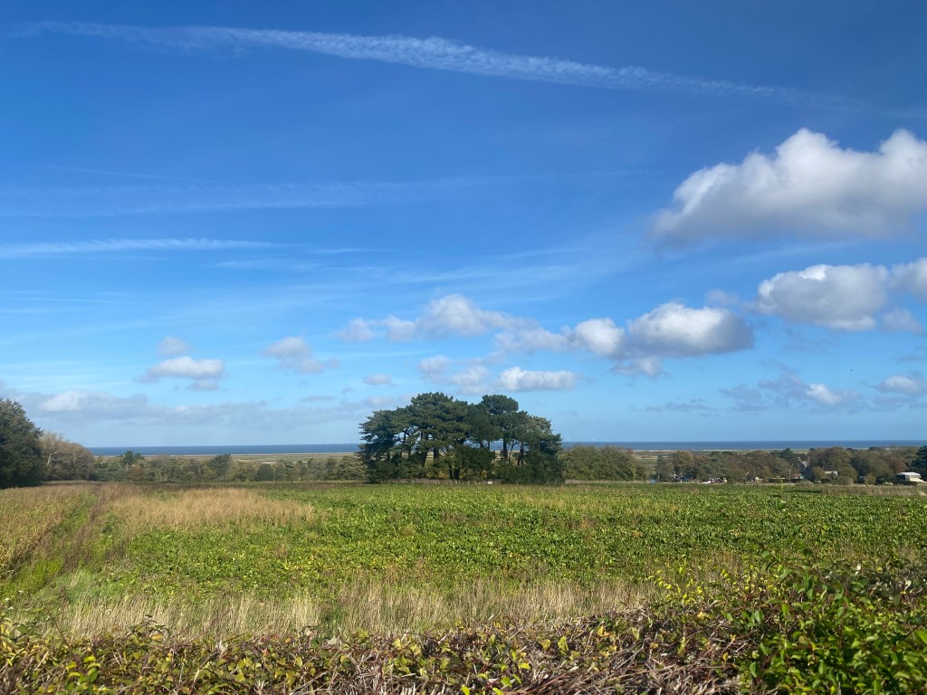 This road is more like a race-track in the summer, so do be careful, but as you walk down the hill towards the village of Cley, the hedge gets lower and you are rewarded by a lovely view down to the sea.